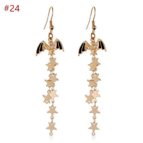 Halloween Jewelry Bat with Long Golden Alloy Stars Tassel Chain Wholesale Costume Earrings