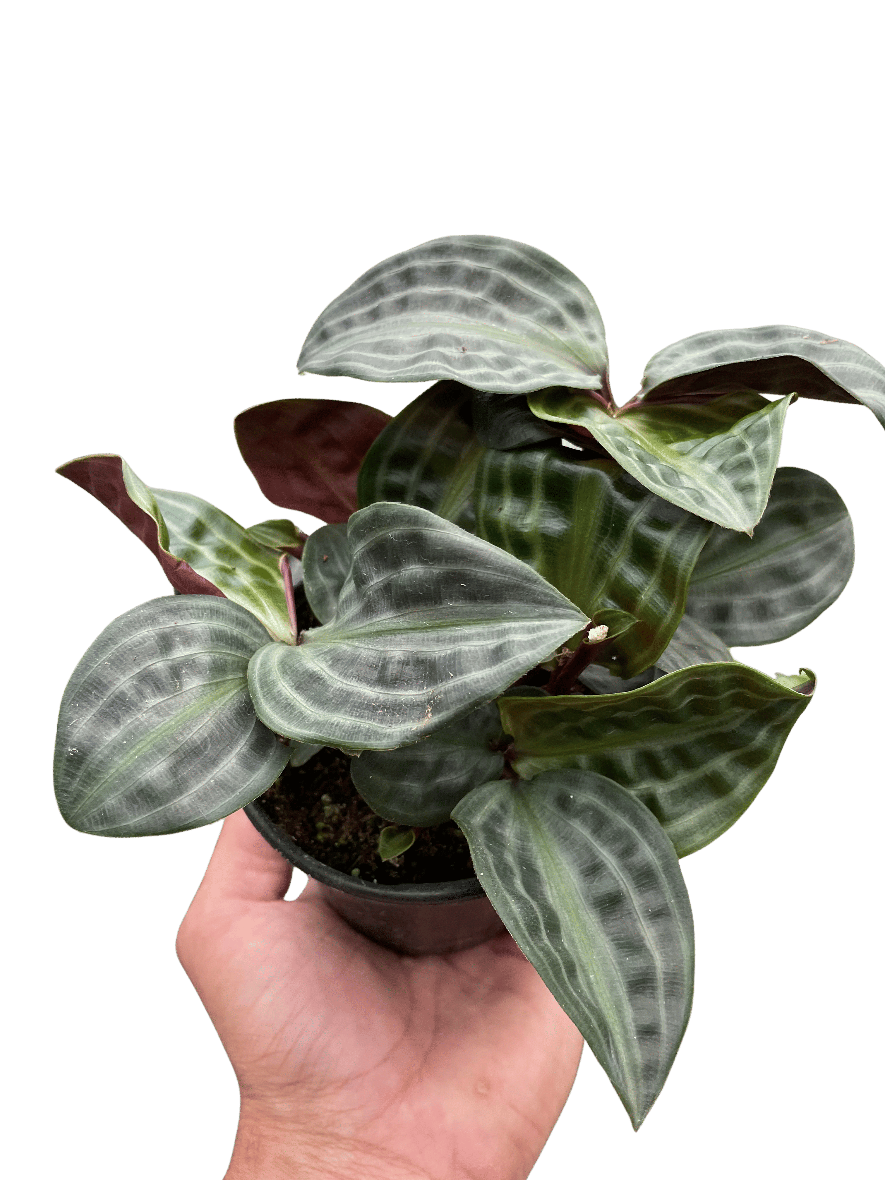 Botanical Name: Geogenanthus poeppigiiCommon Names: Seersucker PlantDescription: The Geogenanthus Seersucker plant is a unique and eye-catching perennial that is native to Brazil. It is characterized by its crinkled, textured leaves that resemble the fabric of seersucker. The plant typically grows to be around 12 inches tall and 18 inches wide, making it a great choice for small indoor spaces or as an accent in larger arrangements. It prefers bright, indirect light and moderate watering, allowing the soil to dry out slightly between waterings. The Seersucker Plant’s unique texture and low maintenance make it a popular choice for adding interest and greenery to indoor spaces.